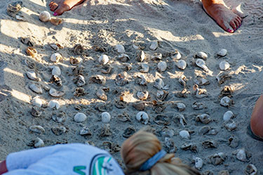 Volunteers also report any threats to sea turtles they find during their morning walk like deep holes that can trap turtles or beach furniture that block nesting grounds. Help sea turtles by filling holes you dig and putting away beach equipment each day.