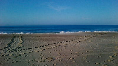 Volunteers patrol the beaches each morning on foot from May 1 through August 31 looking for sea turtle crawls, which they report to volunteer coordinators.